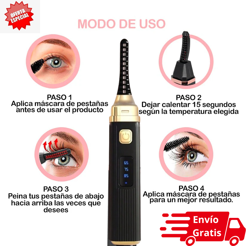 Nuestro Encrespador de Pestañas Eléctrico con calor suave riza de forma rápida, segura y sin daño.