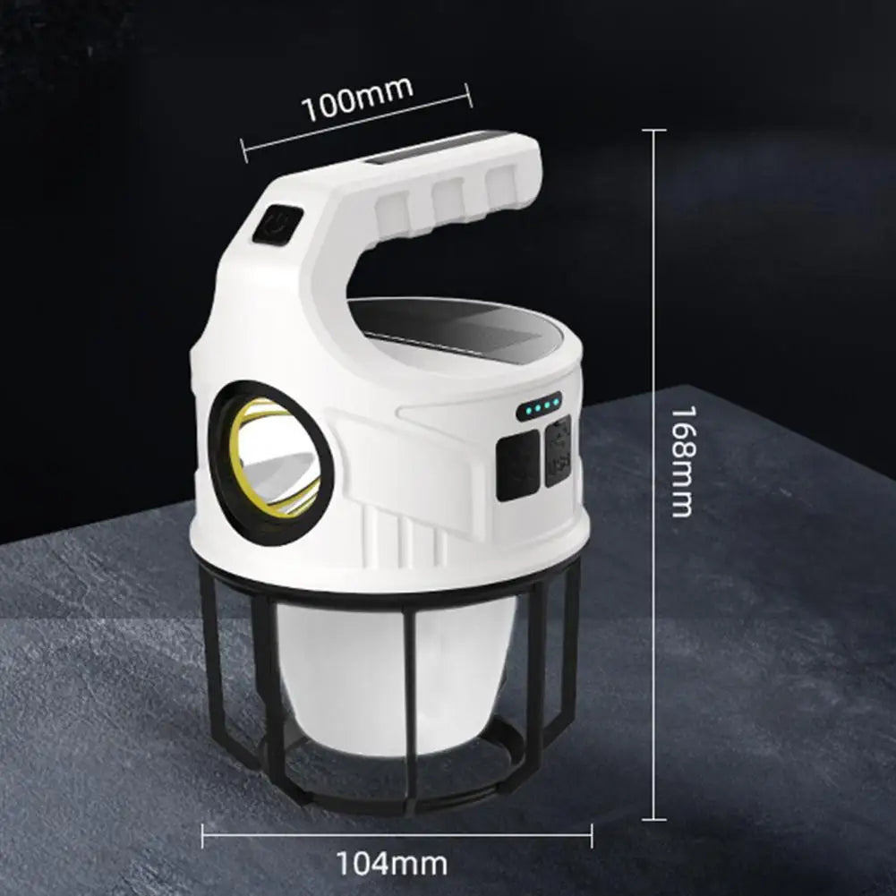 Practicidad y Seguridad: Su diseño robusto en ABS de alta resistencia y la capacidad de ser cargada por energía solar aseguran que siempre esté lista cuando más la necesite, proporcionando una solución de iluminación y energía integral.